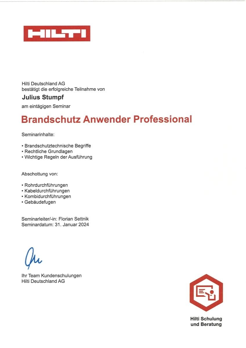 Zertifizierter Brandschutztechniker geprüft durch MFPA Leipzig